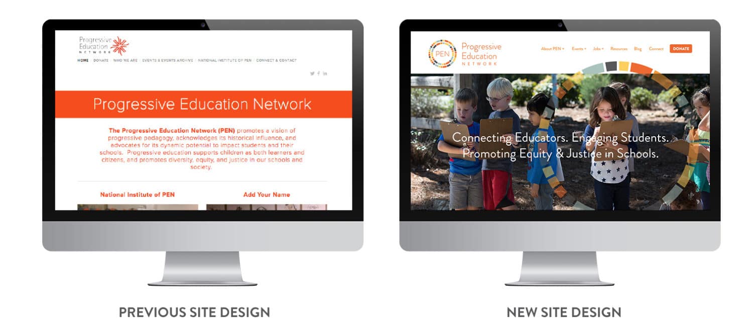 Working with Tiny Bold on the design refresh was as dynamic and exciting as the finished product – we love the new logo! By listening intently to our group as we talked about what the network means to each of us, what our hopes are in growing the network, our passion for progressive education, and the community of folks who are changing the lives of students every day, Tiny Bold was able to present three delightful possibilities for us to choose from and perfect as a team. The eventual design–the one you see here–is what we hit upon after rounds of edits, thinking, and talking together. The website pulls those discussions even further, making it a meeting place to help us all communicate easier throughout the year.